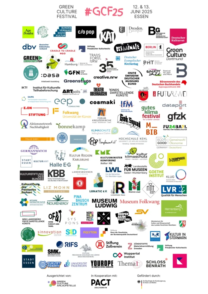 Aus­ge­rich­tet von der Green Cul­tu­re Anlauf­stel­le in Koope­ra­ti­on mit PACT Zoll­ver­ein und geför­dert durch den Beauf­trag­ten der Bun­des­re­gie­rung für Kul­tur und Medi­en, wur­de das Fes­ti­val zu einem beson­de­ren Ort des Aus­tauschs, der Per­spek­ti­ven und der gemein­sa­men Zukunfts­ar­beit.