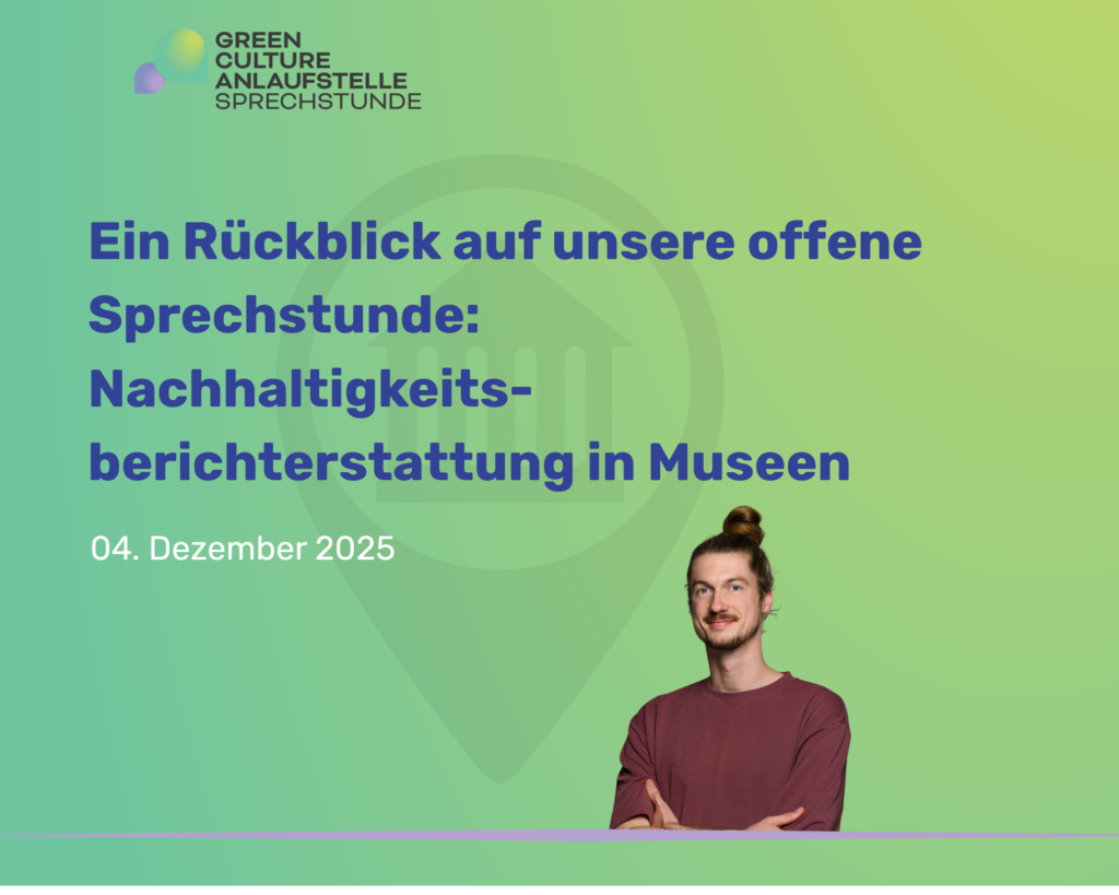 Offene Sprechstunde zur Nachhaltigkeitsberichterstattung in Museen mit Praxisfragen zu CSRD, EMAS und EnEfG – digitaler Austausch für Museumsakteur:innen.