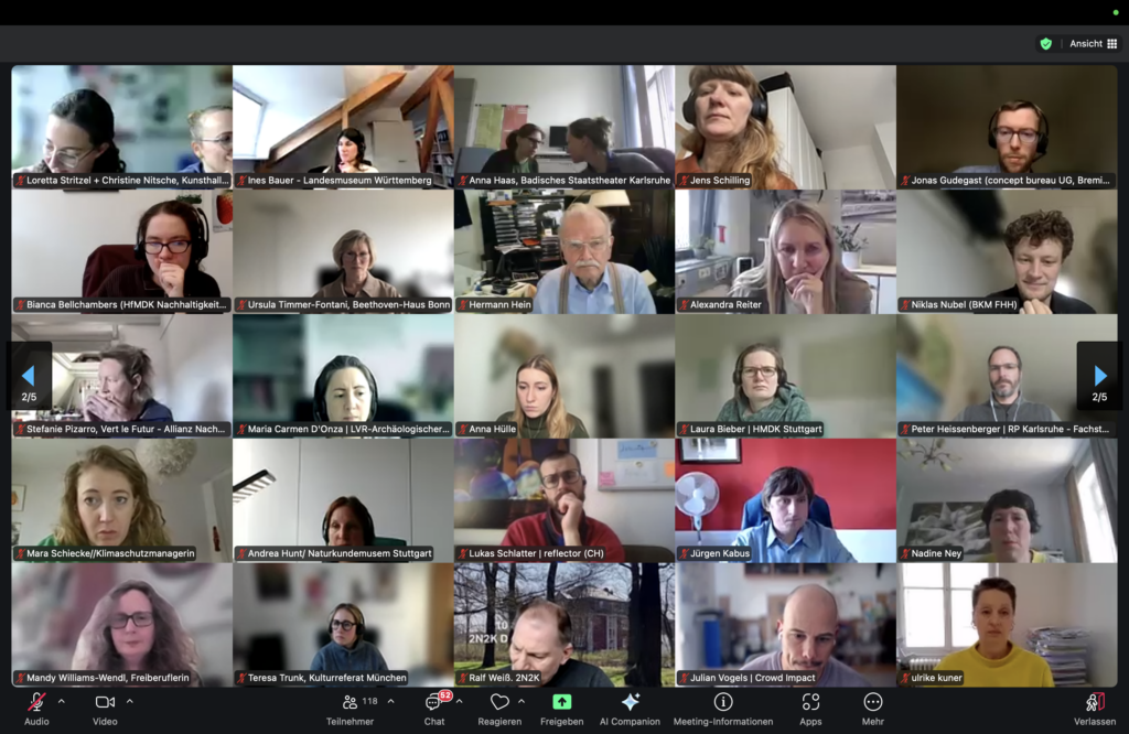 Am 17. März 2026 fand das Webinar zum aktualisierten CO₂-Kulturstandard 1.1 und dem zugehörigen Kulturrechner statt. Zahlreiche Teilnehmende aus dem Kulturbereich nutzten die Gelegenheit, sich über die Weiterentwicklungen des Standards zu informieren und Erfahrungen aus der Praxis der Klimabilanzierung zu teilen.