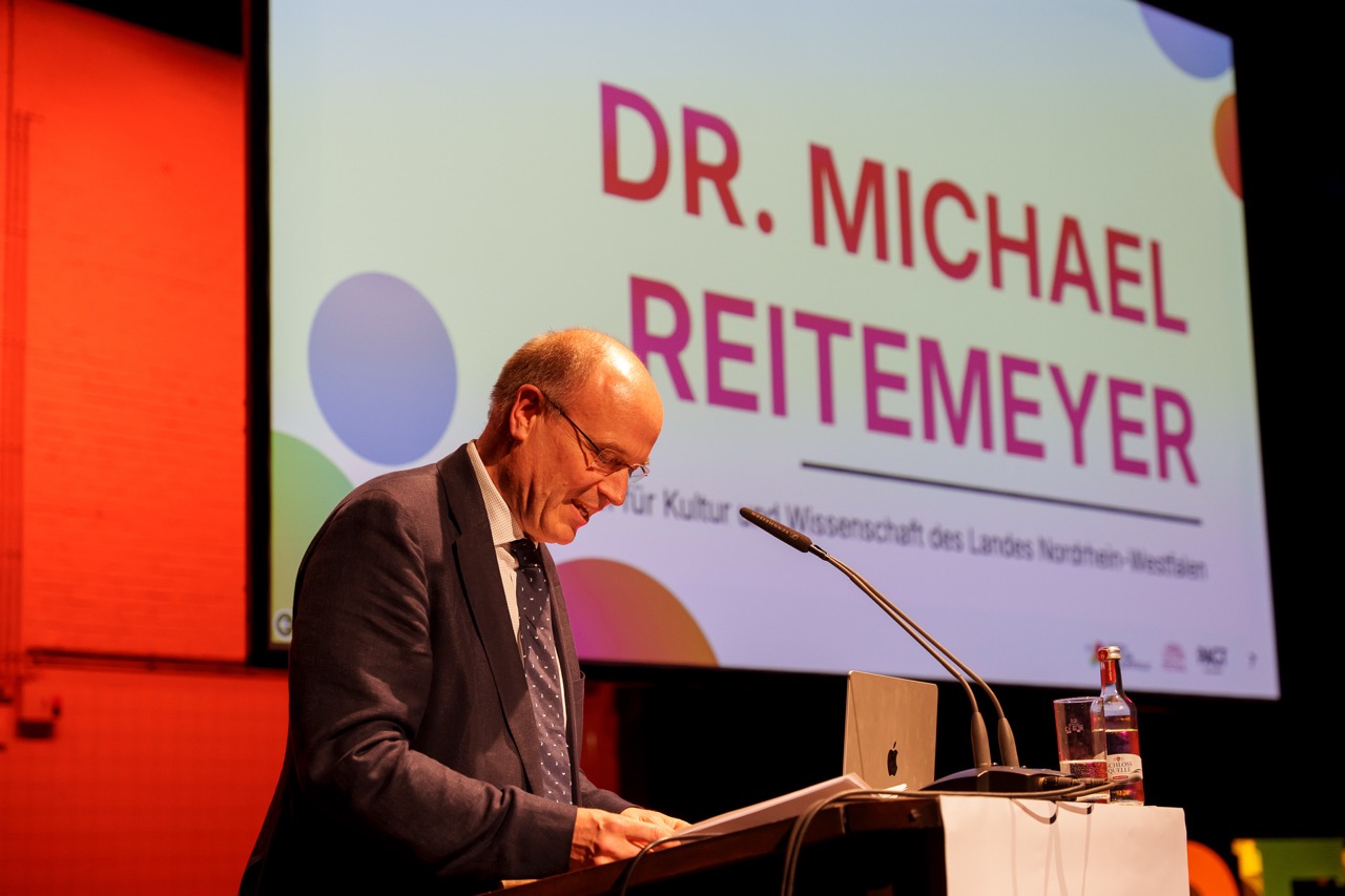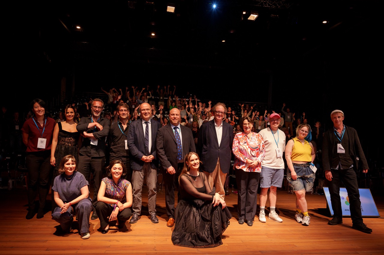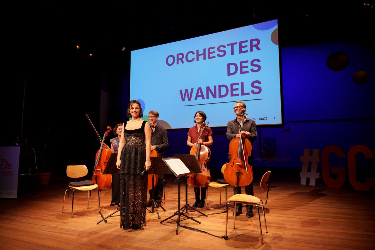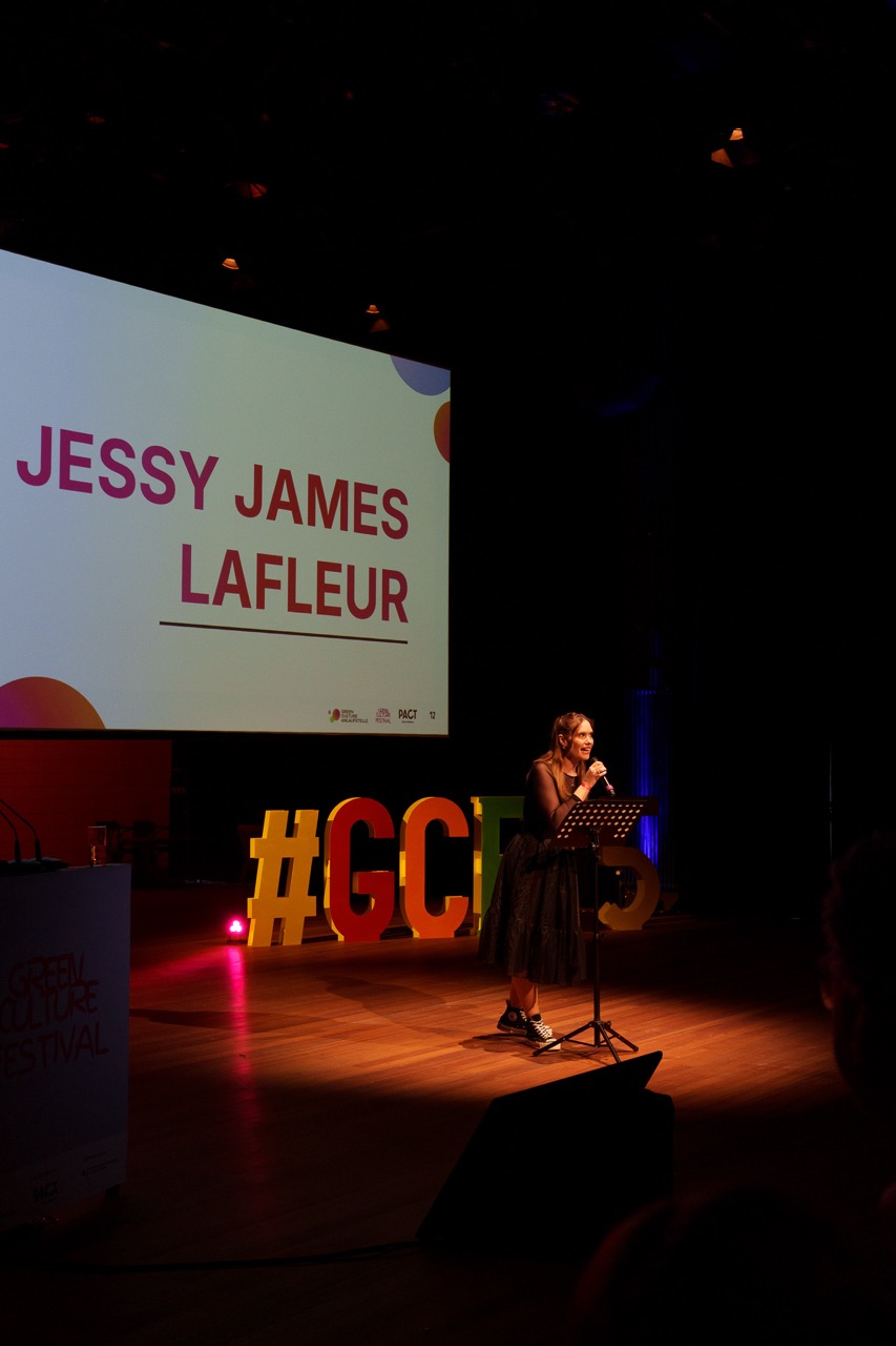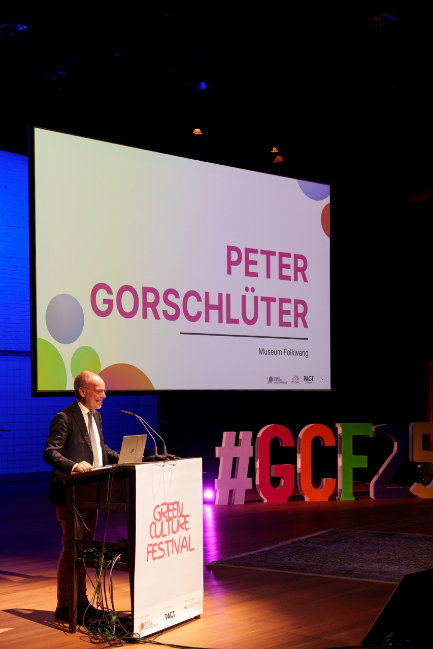 Auf der großen Bühne beim Kooperationspartner PACT Zollverein kamen starke Stimmen aus Kultur, Politik und Zivilgesellschaft zusammen – darunter Vertreter:innen des Beauftragten der Bundesregierung für Kultur und Medien, der die Green Culture Anlaufstelle und das Festival fördert, des Ministeriums für Kultur und Wissenschaft des Landes Nordrhein-Westfalen, der Stadt Essen, der Stiftung Zollverein, des Deutschen Kulturrats und der Green Culture Anlaufstelle selbst.