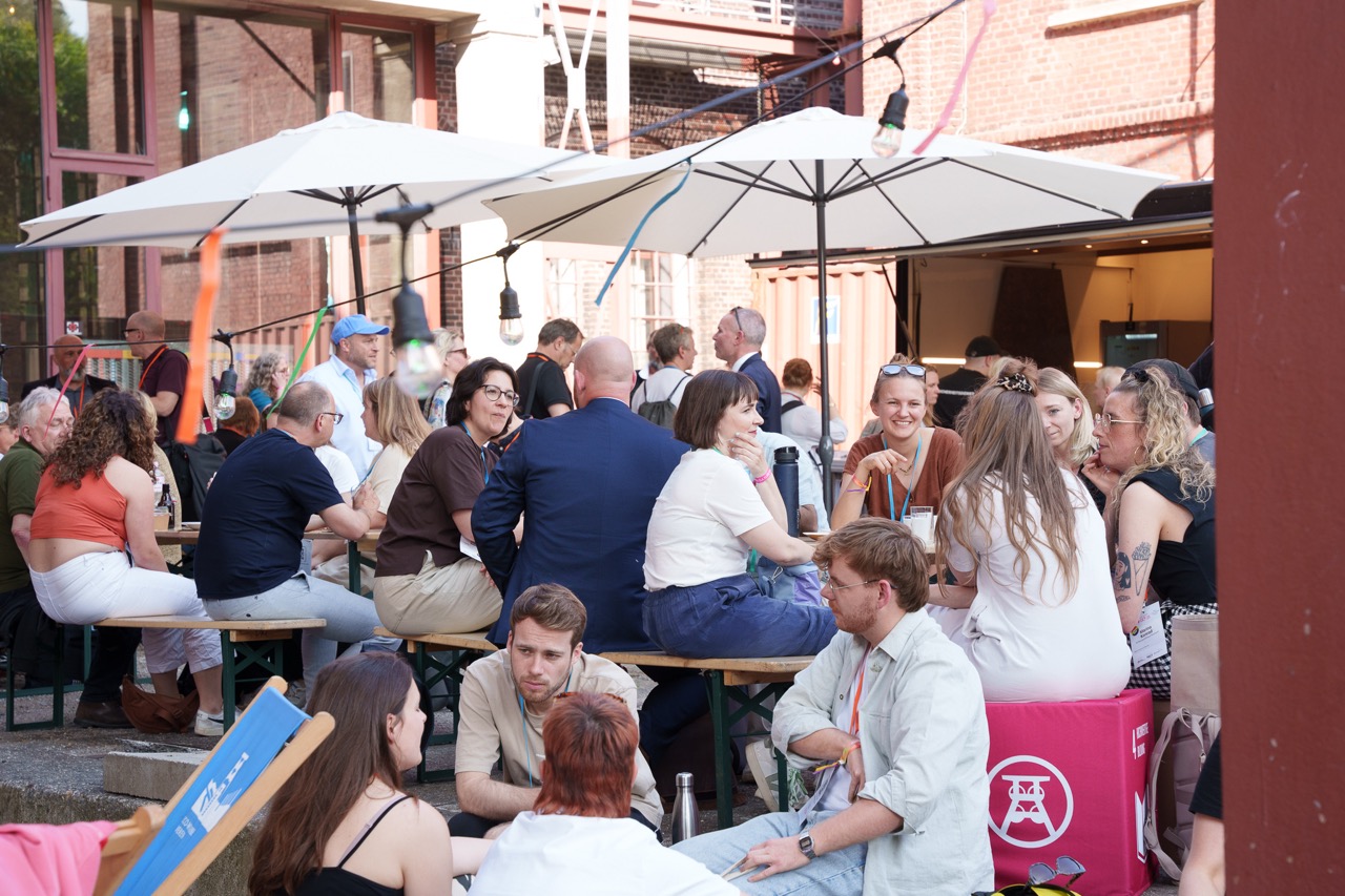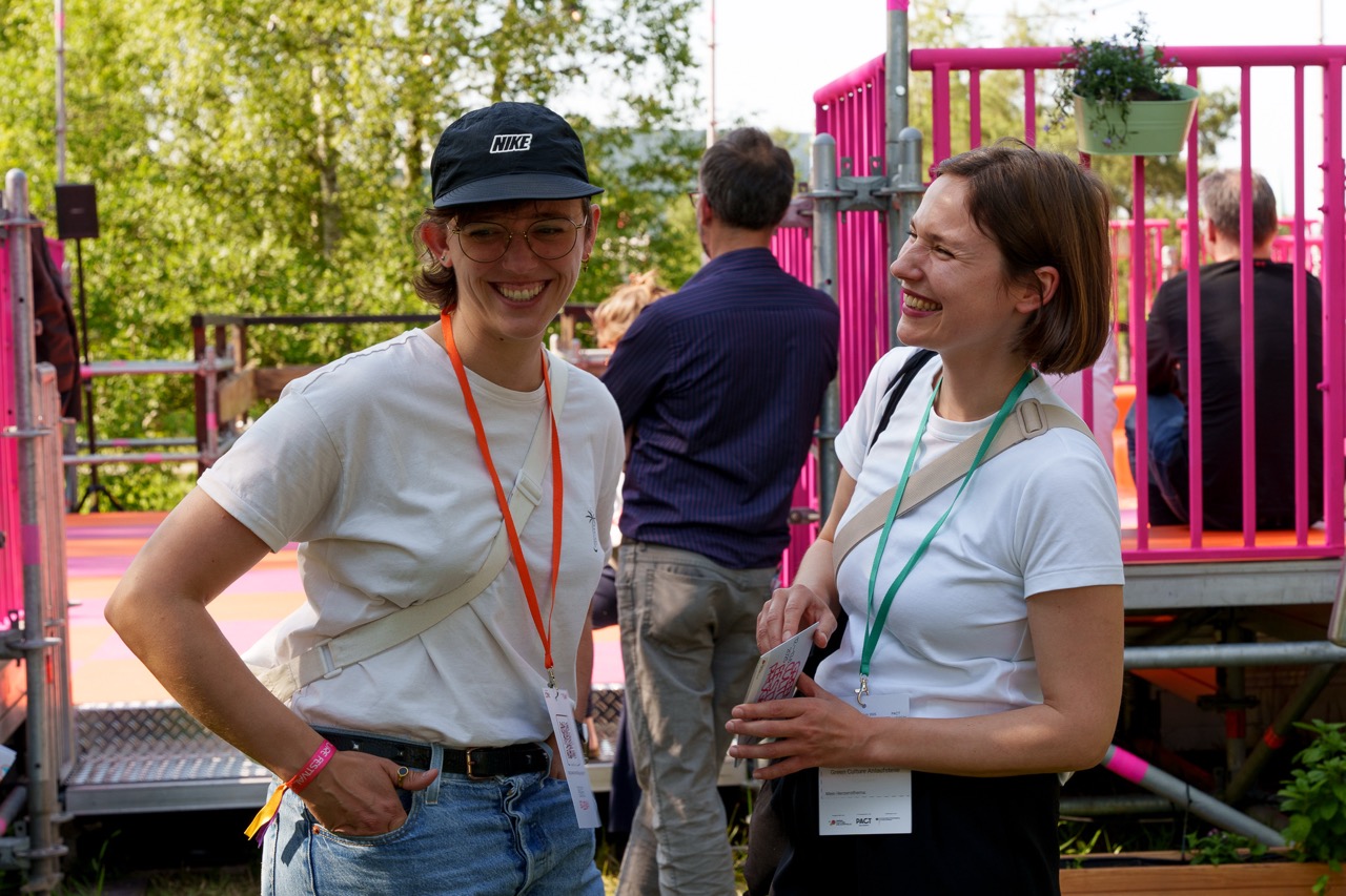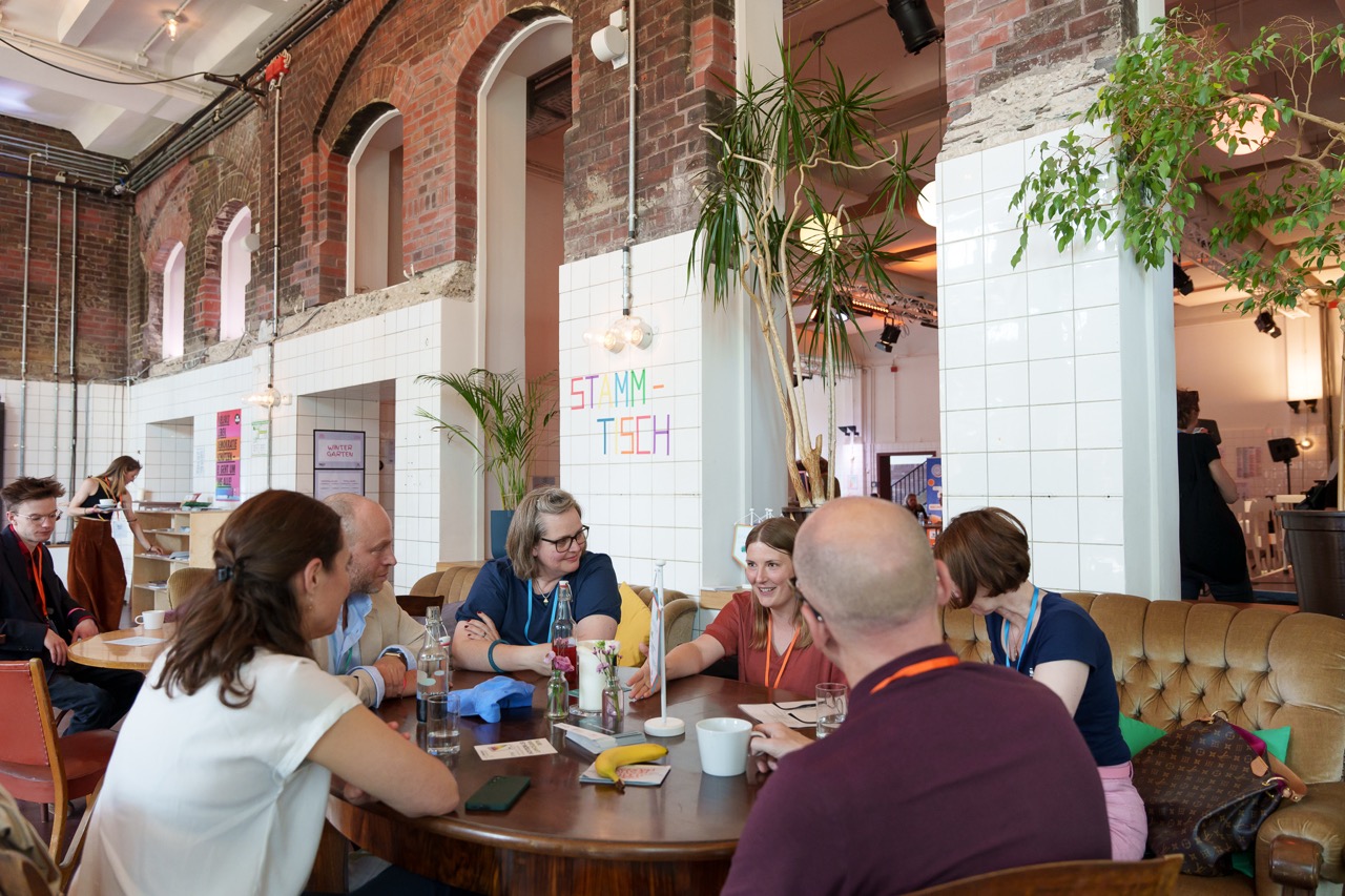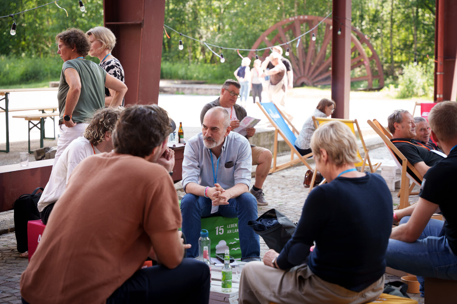 Bei Sonne, Wind und Sommerstimmung bot das Festival auch im Außenbereich viele Gelegenheiten zum informellen Austausch, zum Vernetzen, zum Luftholen – von den Stammtischen im Wintergarten bis zum Spaziergang durch den Waldgarten.