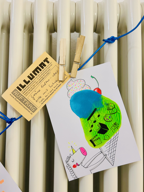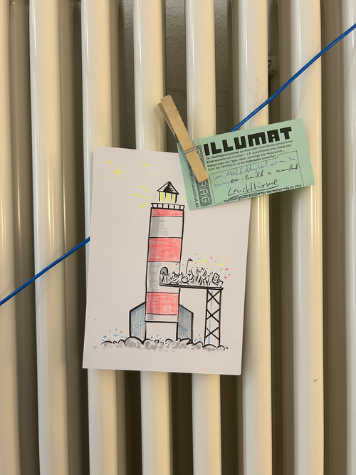 Dazu gab es den Illumaten, in dem ein Künstlerkollektiv handgeschriebene Nachhaltigkeitswünsche kreativ bebilderte.