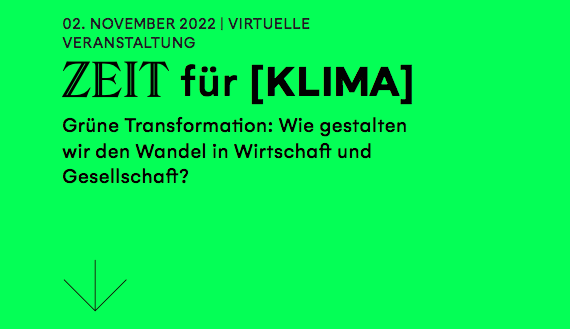 Beim digitalen Thementag ZEIT für Klima wollen wir gemeinsam mit Ihnen und führenden Expert:innen aus Wirtschaft, Wissenschaft, Kultur und Politik, Antworten auf diese Fragen finden. Seien Sie dabei, wenn wir kurz vor der Weltklimakonferenz COP27 in Ägypten diskutieren, wie Unternehmen ihrer Verantwortung nachkommen und die Potenziale neuer Geschäftsmodelle und Klima-Partnerschaften erfolgreich einsetzen.