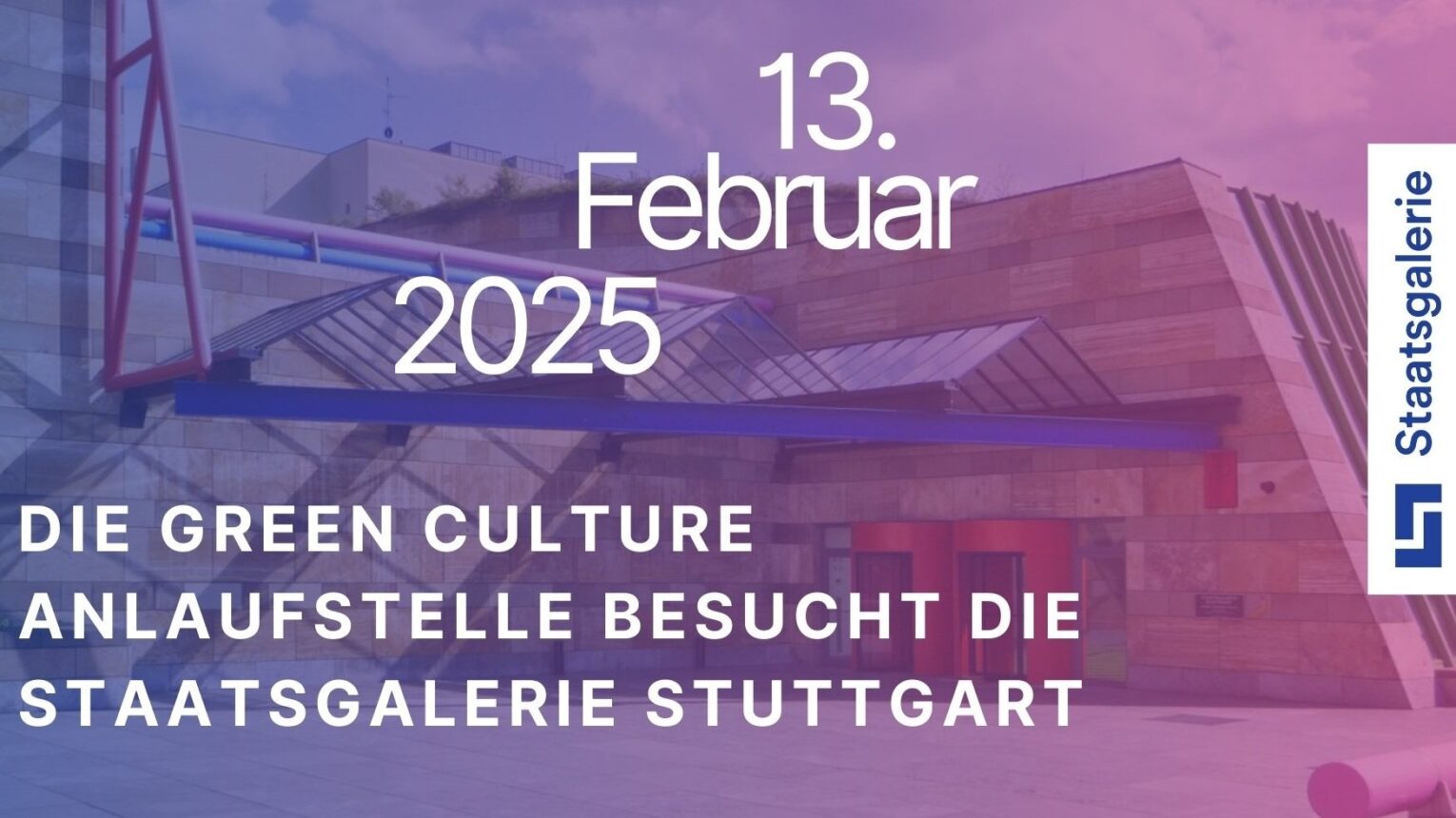 Nur noch wenige Tage bis wir von der Green Culture Anlaufstelle in der Staatsgalerie Stuttgart sind. Seien Sie dabei, wenn wir am 13. Februar 2025 gemeinsam einen Blick darauf werfen, wie das Thema Nachhaltigkeit im Museum strategisch und innovativ umgesetzt werden kann.