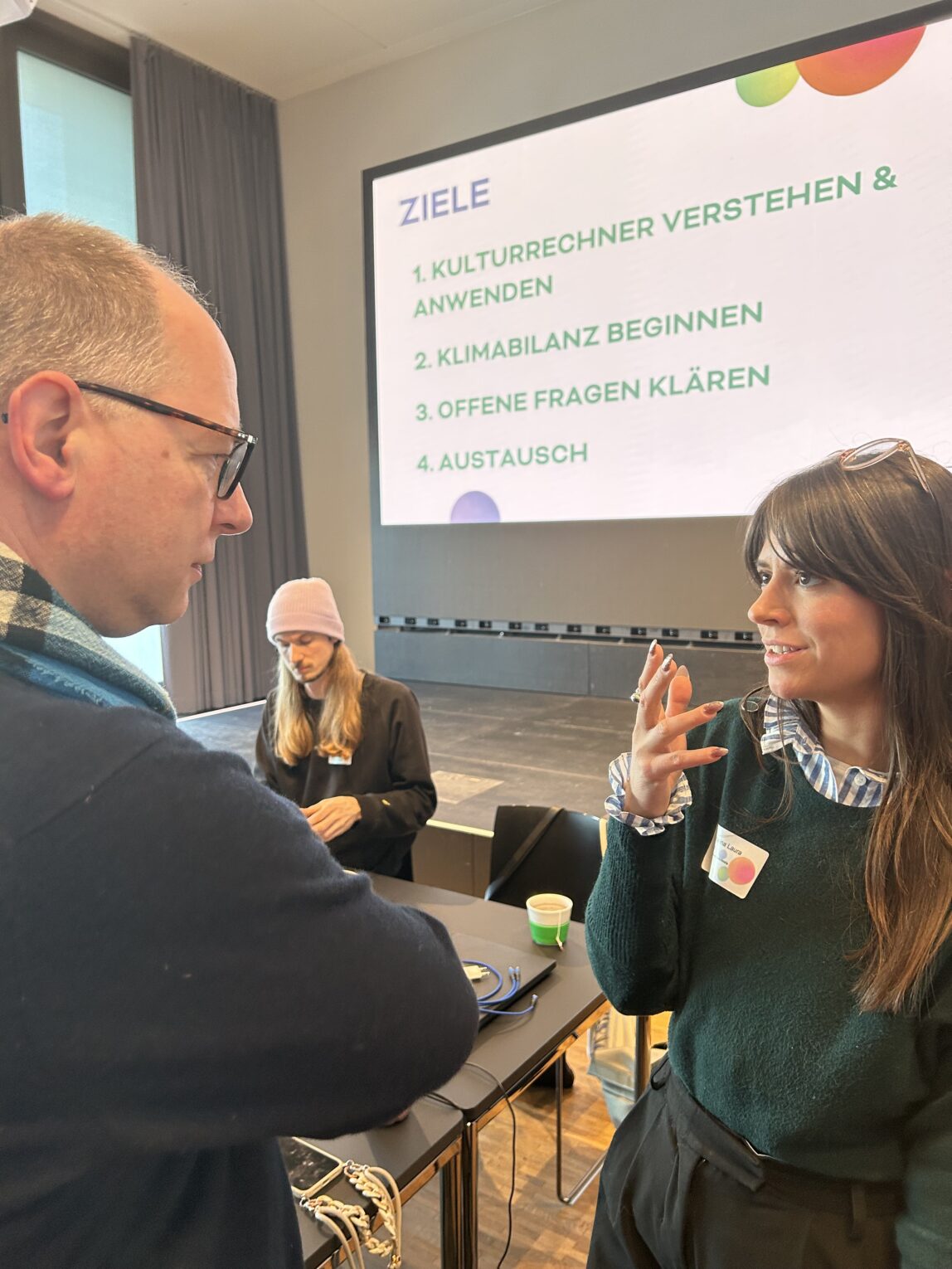 Ein praxisnaher Workshop, in dem Sie nicht nur lernen, wie Klimabilanzierung funktioniert, sondern Praxiserfahrungen geteilt werden und Sie das Wissen auch direkt umsetzen können. Expert:innen begleiten Sie dabei, und im Austausch mit anderen Kulturschaffenden entwickeln Sie Ideen und Lösungen für Ihre Klimabilanz. Hierbei arbeiten wir mit der aktuellen Version des Bundesrechners. Bitte bringen Sie Ihren Laptop und Daten (fiktional oder real) zur Klimabilanzierung mit. Mit Expert:innen aus der Praxis, Mona Rieken aus dem Theaterbereich und Karen Meyer aus dem Museumsbereich, sowie den Entwickler:innen des Bundesrechners von KlimAktiv werden Sie an dem Tag gut begleitet erste Schritte der Klimabilanz zu gehen.