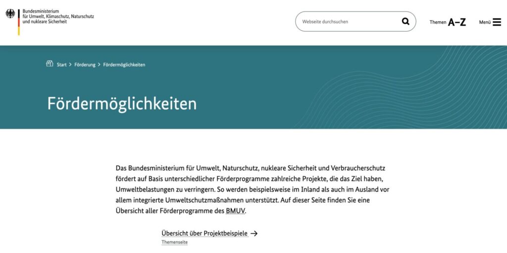 - Online-Übersicht aller Förderprogramme des Bundesumweltministeriums (BMUV).