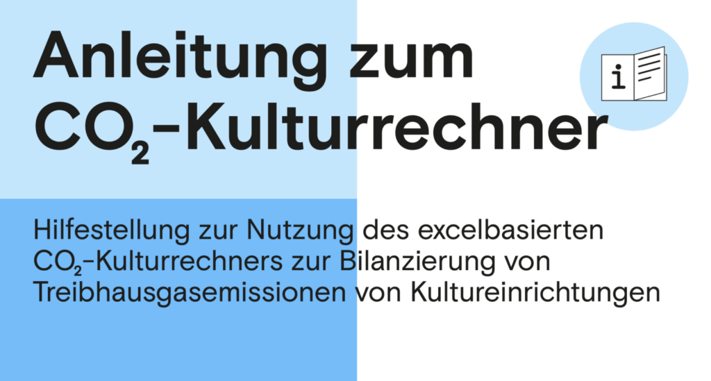 • Die Anlei­tung unter­stützt bei der Anwen­dung des CO₂-Kul­tur­rech­ners, basie­rend auf dem CO₂-Kul­tur­stan­dard nach Kli­ma­Bi­lanz­Kul­tur(+)