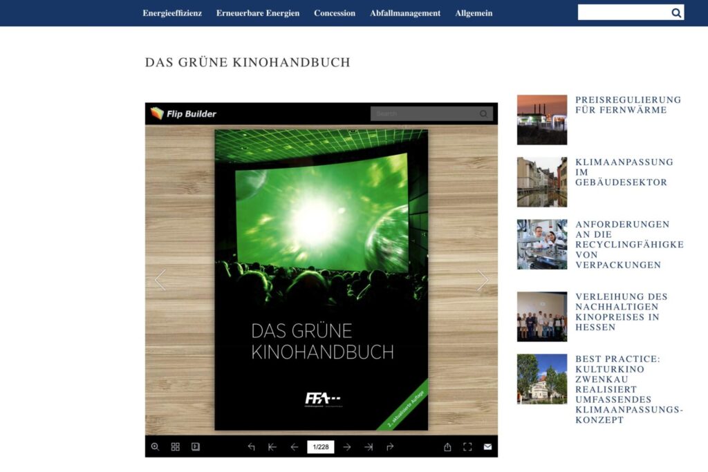 - Die Neuauflage des Grünen Kinohandbuchs stellt detaillierte Informationen bereit zu Energieeffizienz, erneuerbaren Energien, Concession und Abfallmanagement.