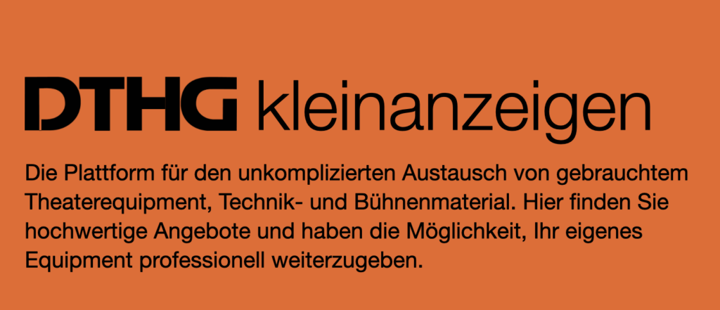 - Die Deutsche Theatertechnische Gesellschaft (DTHG) stellt eine kostenfreie Kleinanzeigenplattform bereit, um Material nachhaltig weiterzugeben, Müll zu reduzieren und regionale Zusammenarbeit zu stärken.