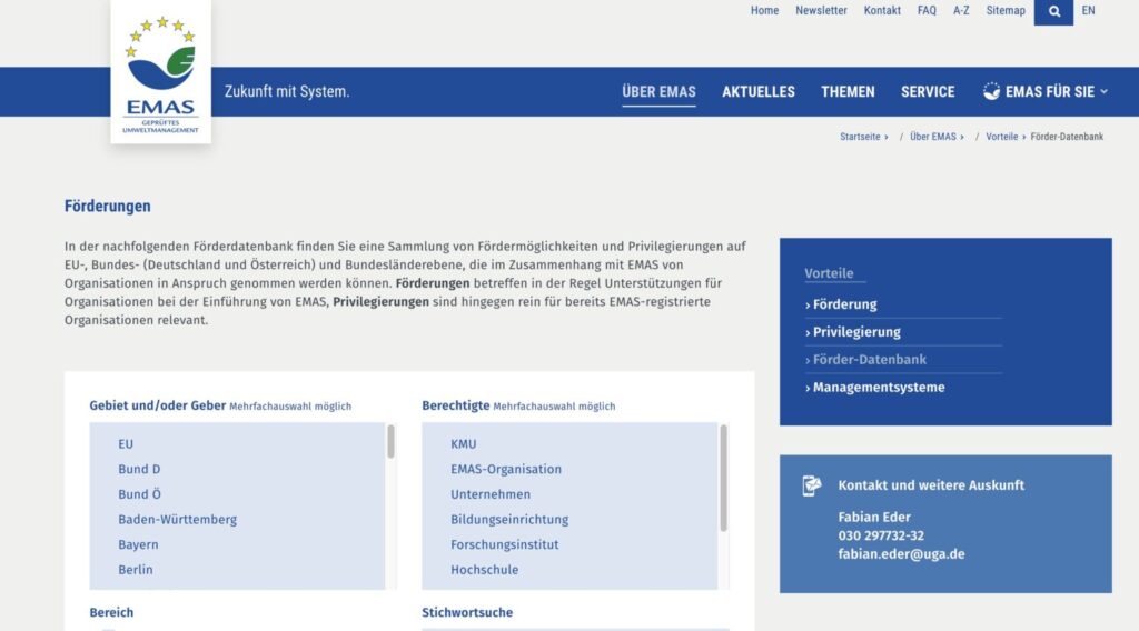 EMAS Förderdatenbank für Umwelt- und Nachhaltigkeitsprojekte