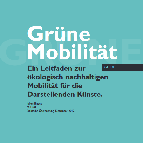 • Der Leit­fa­den (erschie­nen im Mai 2011, auf Deutsch im Dez 2012) zur öko­lo­gisch nach­hal­ti­gen Mobi­li­tät bün­delt prak­ti­sche Emp­feh­lun­gen zur umwelt­freund­li­chen Tour­mo­bi­li­tät für Dar­stel­len­de Küns­te. Er bie­tet Leit­li­ni­en für Künstler:innen, Produzent:innen und Ver­an­stal­tungs­or­te, um Mobi­li­tät bewusst, res­sour­cen­scho­nend und nach­hal­tig zu pla­nen und umzu­set­zen.