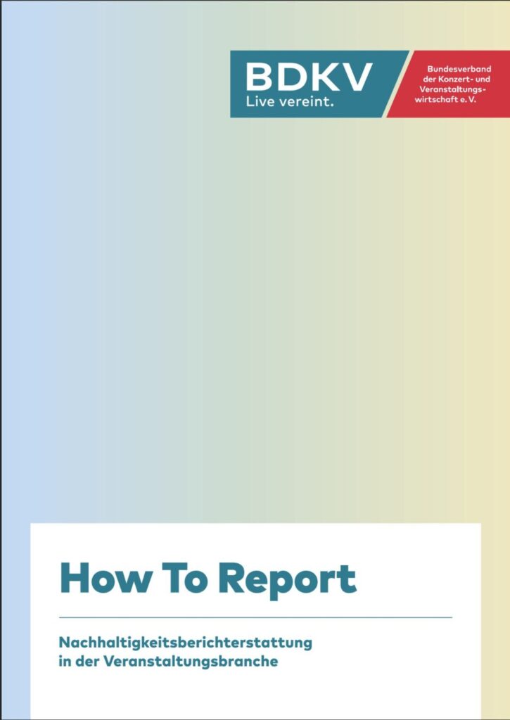 - Der Leitfaden erklärt die Grundlagen der Nachhaltigkeitsberichterstattung für die Live Entertainment-Branche und zeigt praxisnahe Einstiegsmöglichkeiten auf.