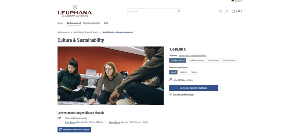 - Frequenz: 1x jährlich (Zertifikatsstudium)
